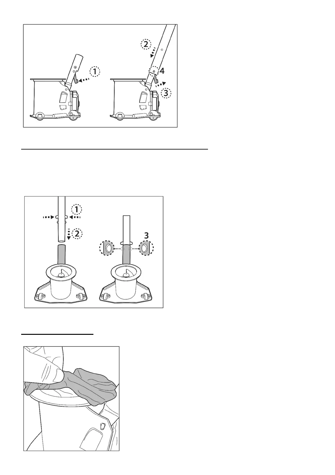 Appuyez sur le clip interne de fixation (préinstallé à l’intérieur du manche téléscopique