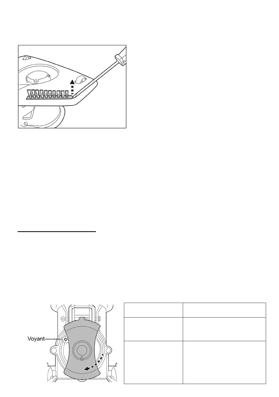 placé sur le coin supérieur s’allumera. Plongez l’aspirateur dans l’eau. L’indicateur se