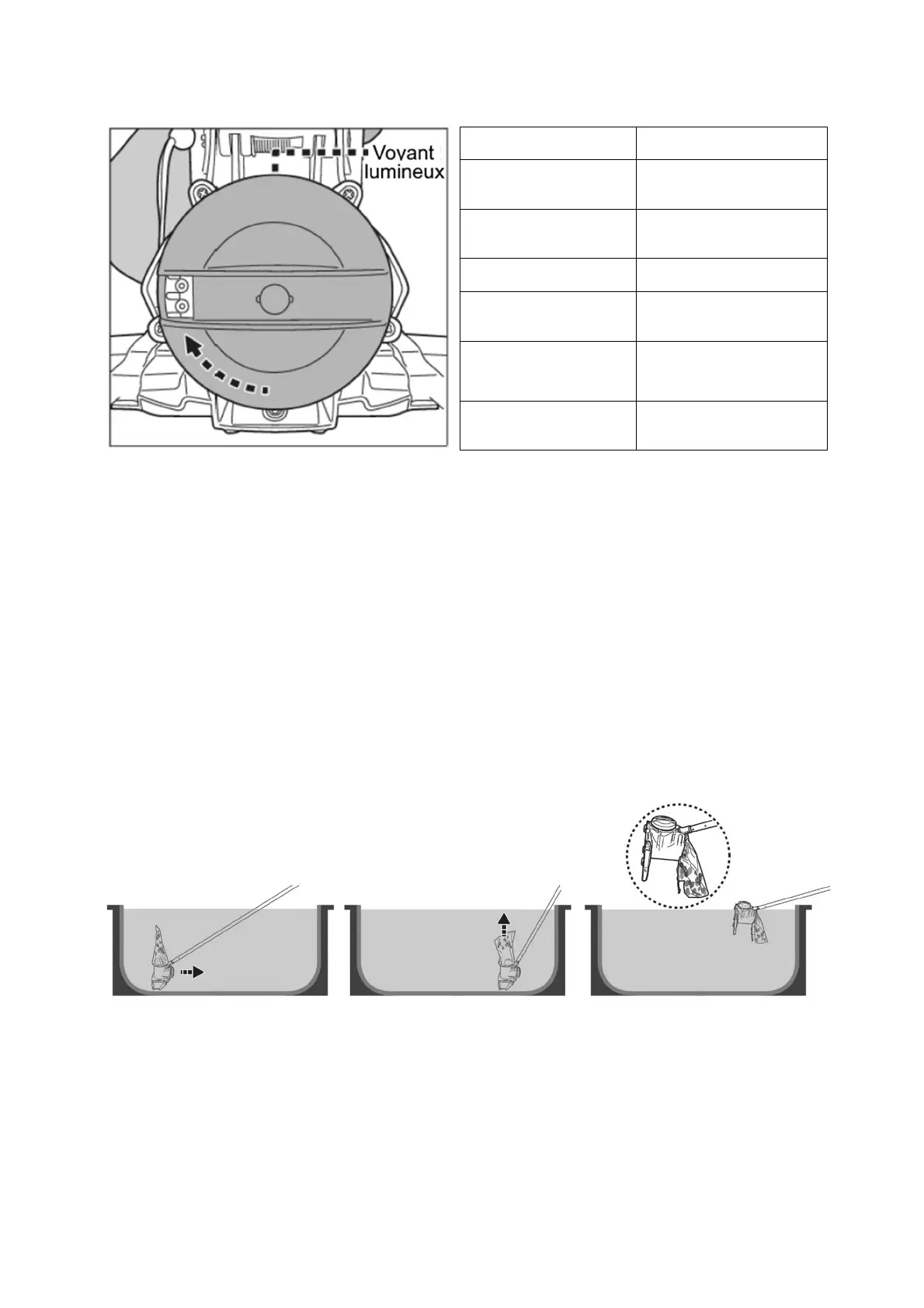 Une fois l’aspirateur hors de l'eau, la turbine cessera de tourner en 2-3 secondes. Le
