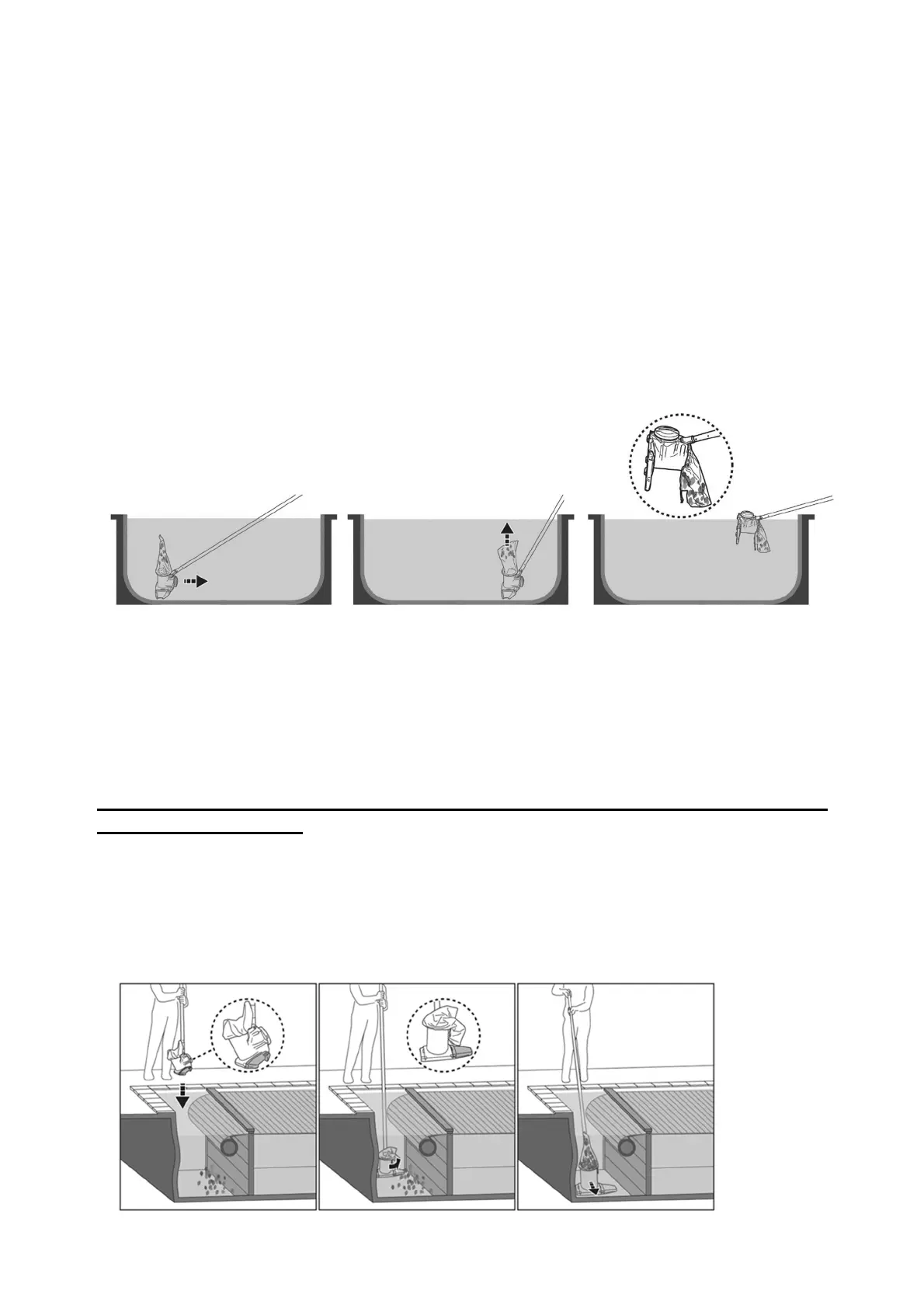 vloer van het zwembad wordt gelegd terwijl u de stofzuiger in regelmatige beweging heen