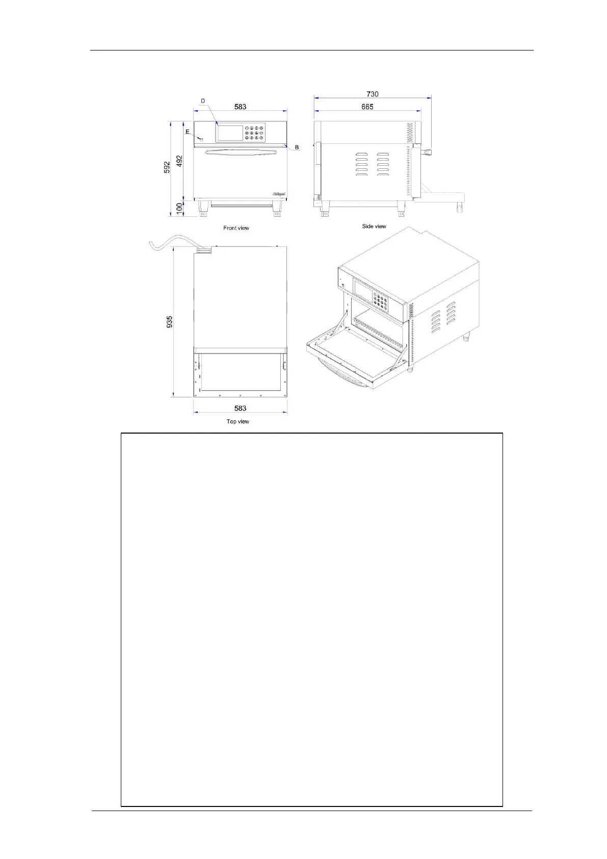 Door open dimension: 583(W) x 935(D) x 592(H) mm