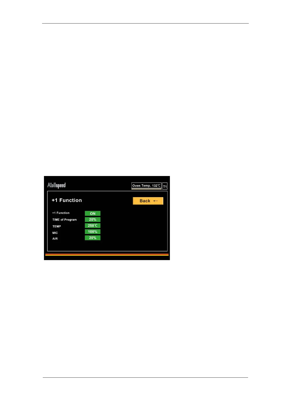 The oven has an optional “+1” function that can be activated in user settings. This function allows