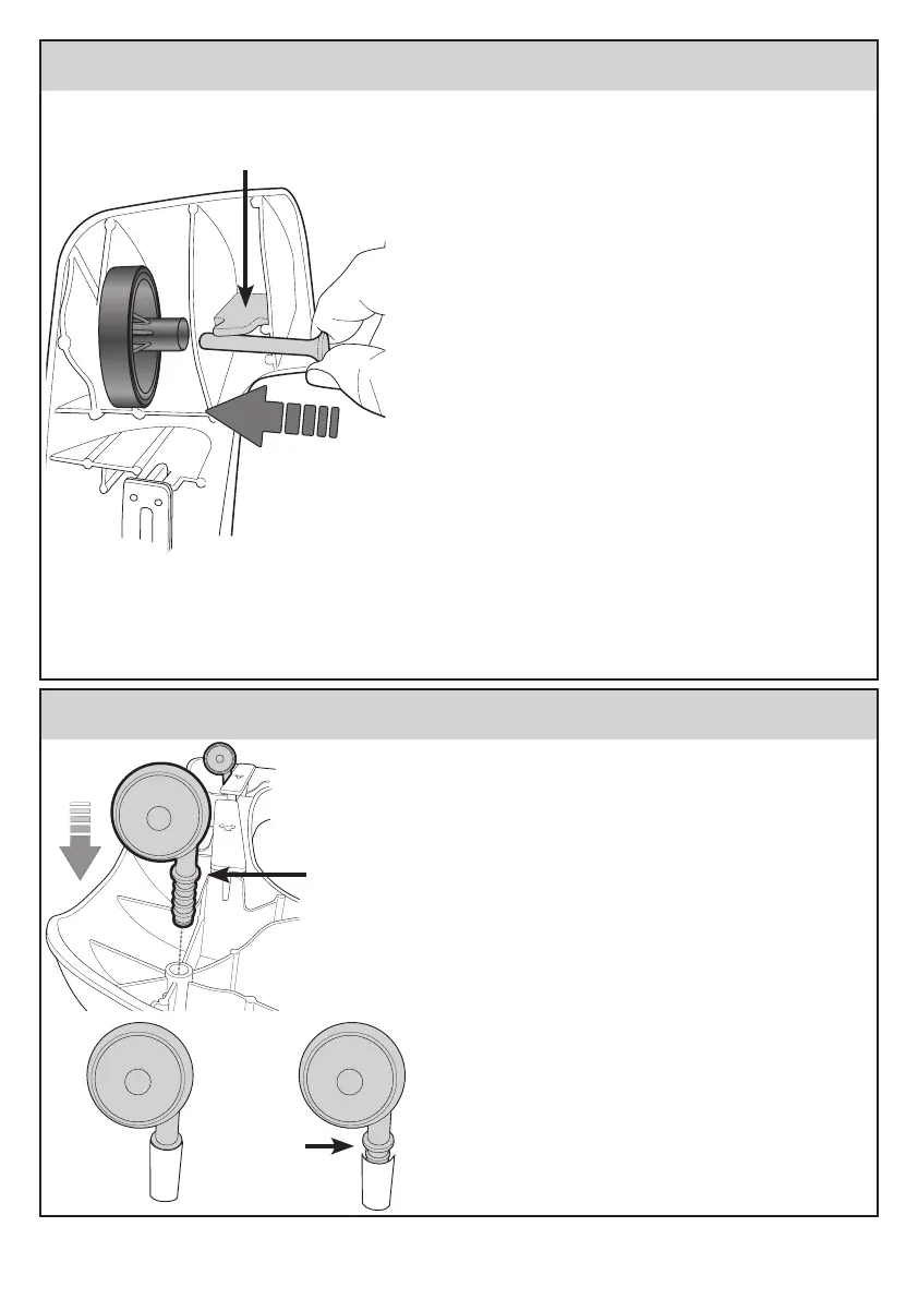 the side to expose the axle hole. The stem of the wheel