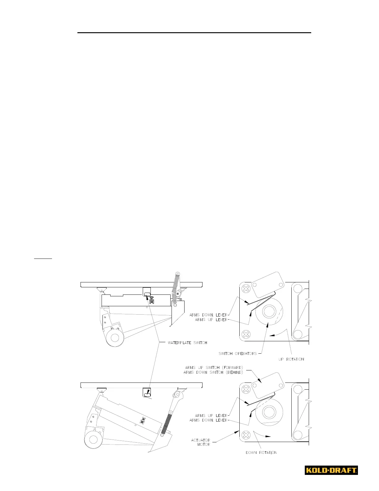 Note: The front operator is for adjusting the arms up switch and the back operator is for adjusting