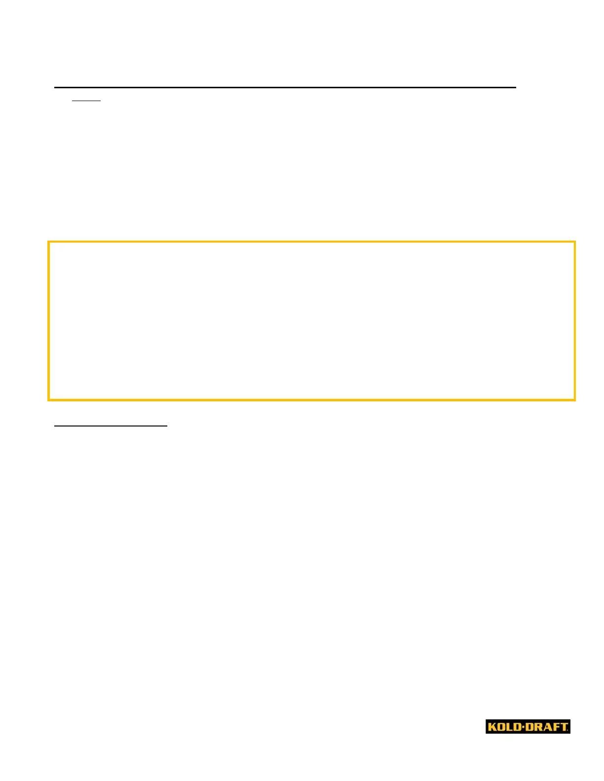 All KOLD-DRAFT models are intended to be installed with a permanent connection to the field