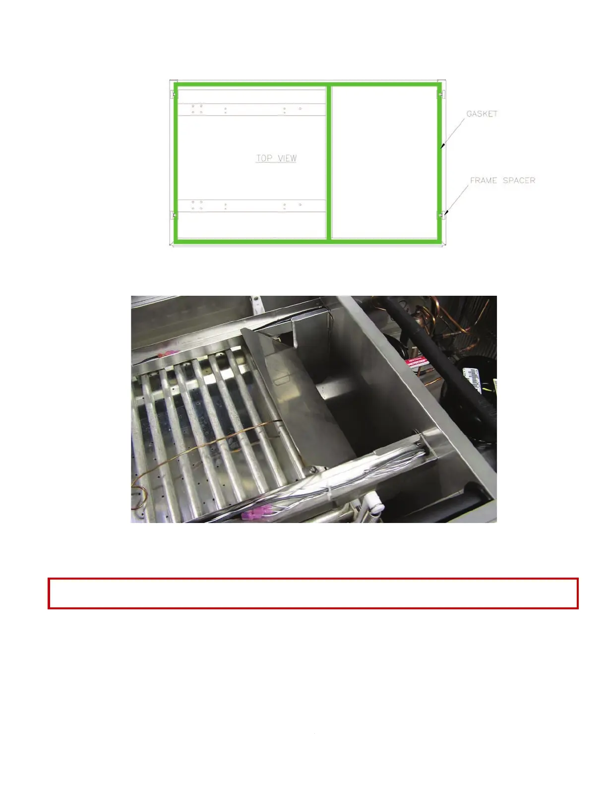 5. Apply the gasket provided to the top of the lower ice machine frame as shown. Place the