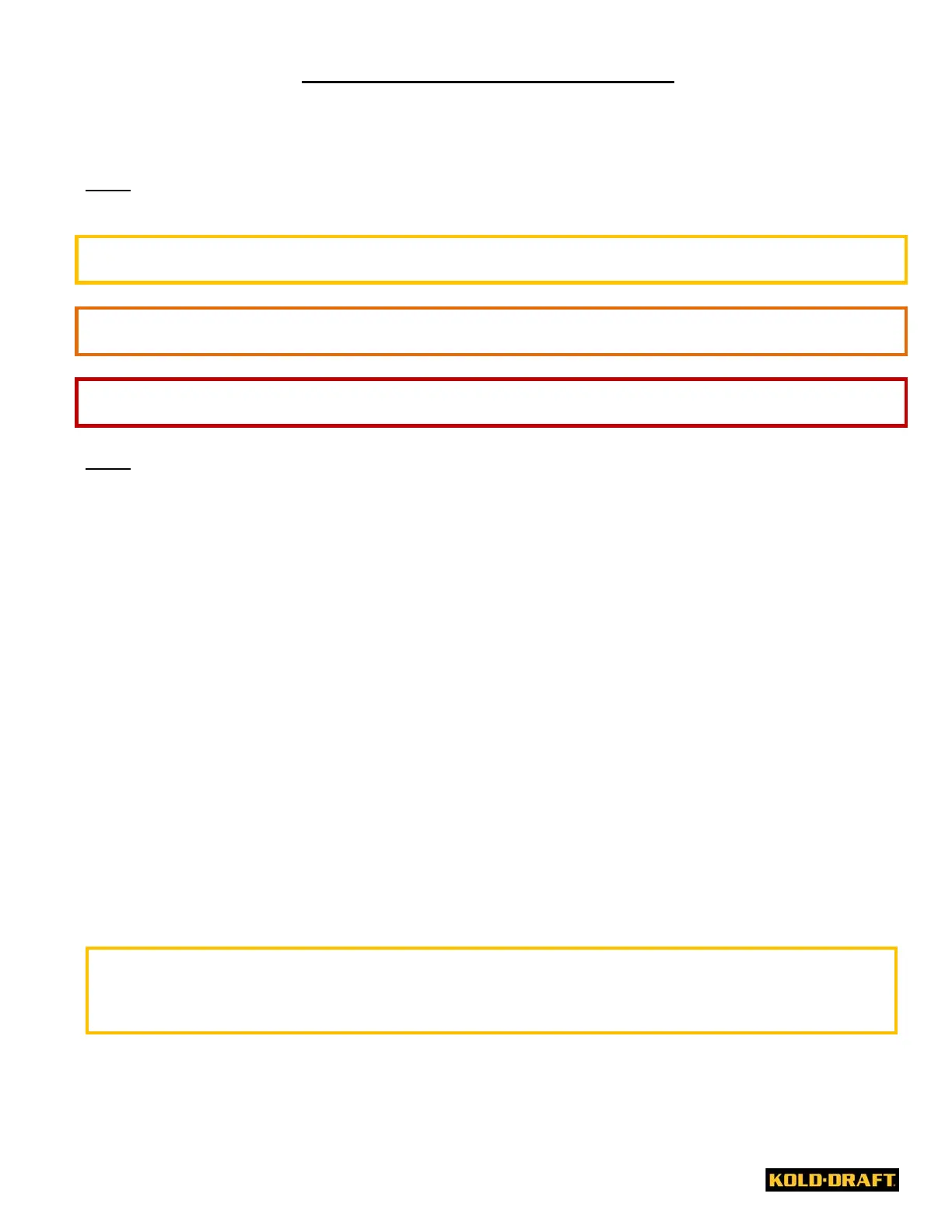 Warning: Use only genuine KOLD-DRAFT replacement parts, Use of non-approved parts