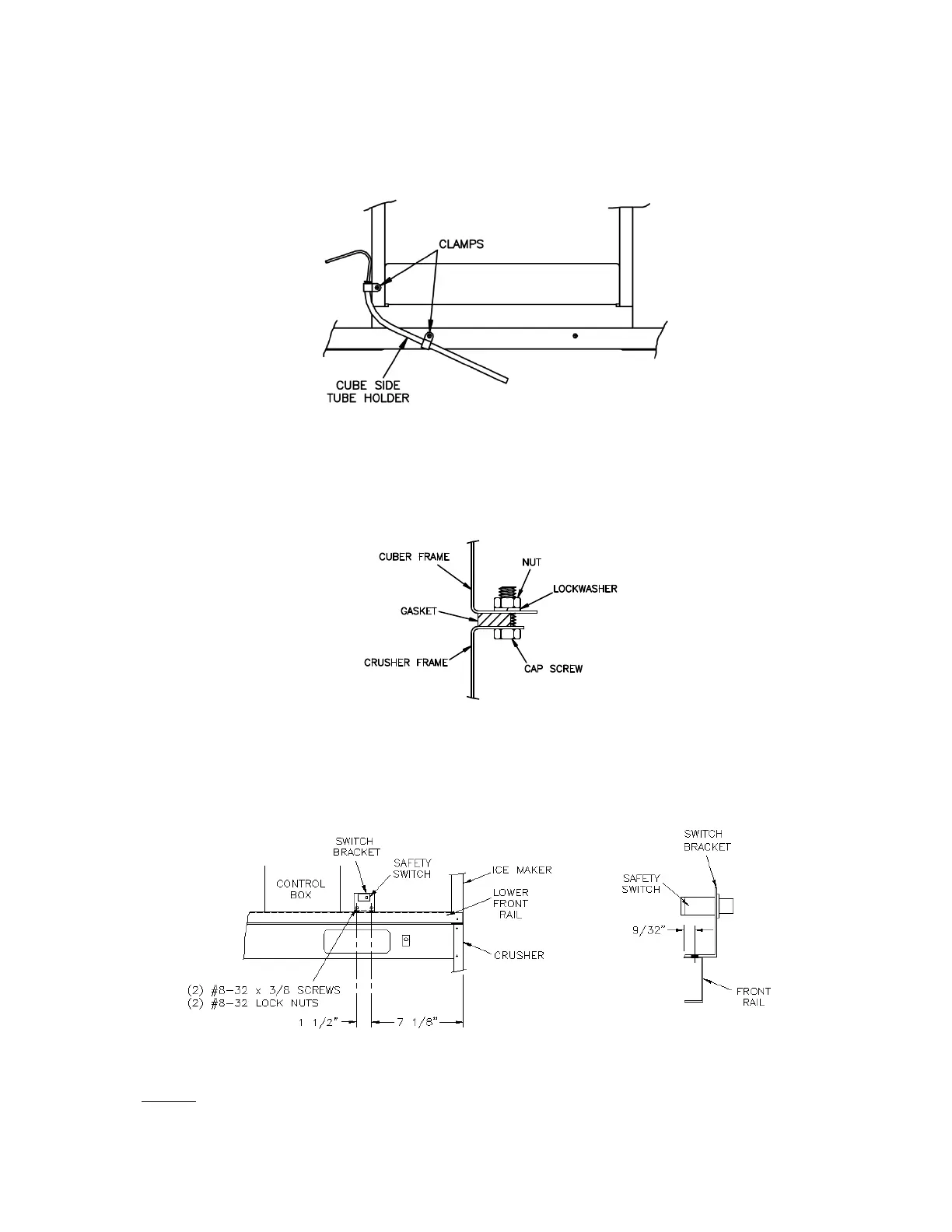 holes in the ice maker lower front rail. Mount the safety switch support with the #8-32 screws