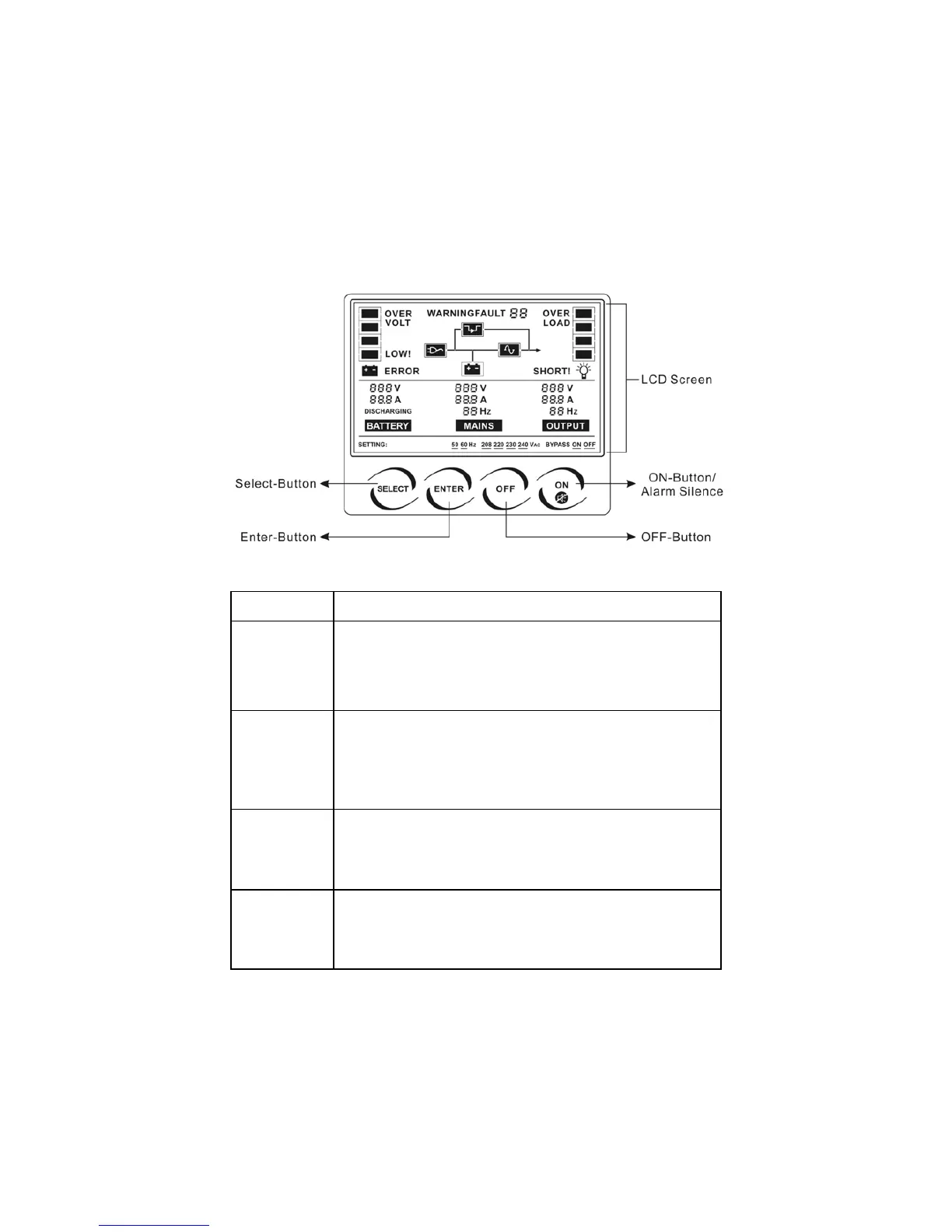 output or Bypass mode by pressing “OFF” button, and the