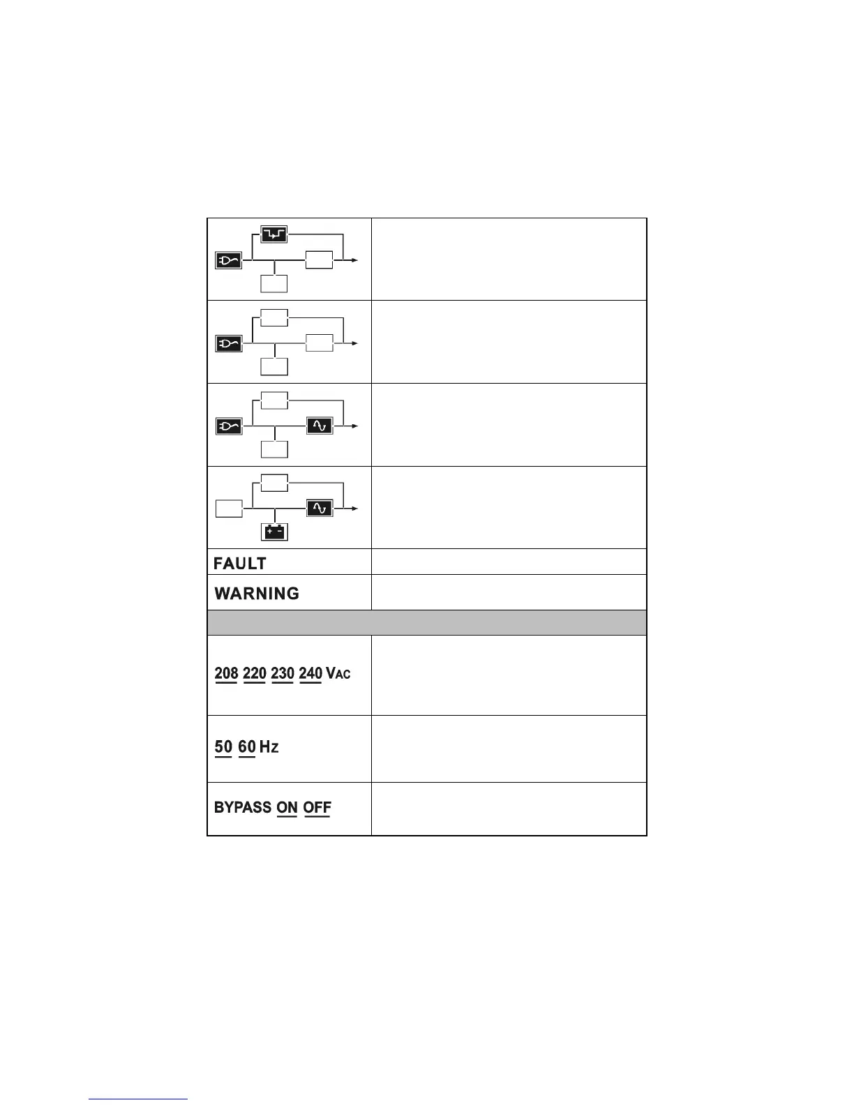 Indicates the UPS is working in fault mode