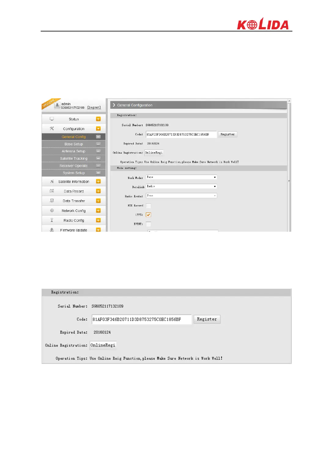 KOLIDA K1Pro is allowed to setup the working mode and datalink from this Web UI that only