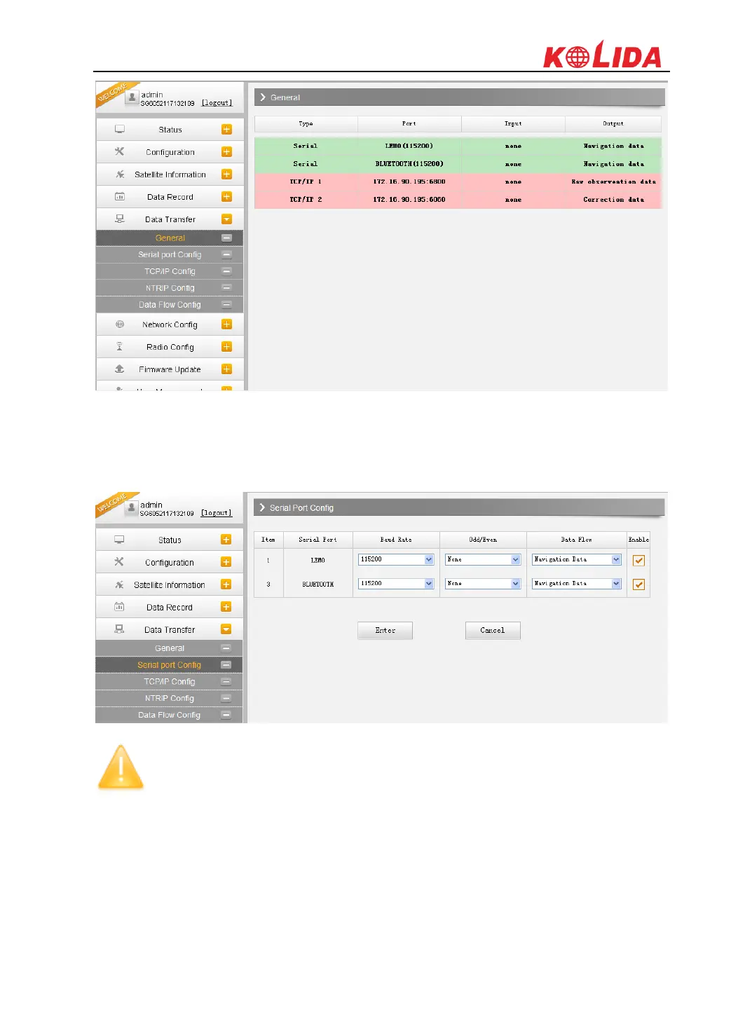 This page is allowed to configure the baud rate, odd-even check and the data flow for serial port