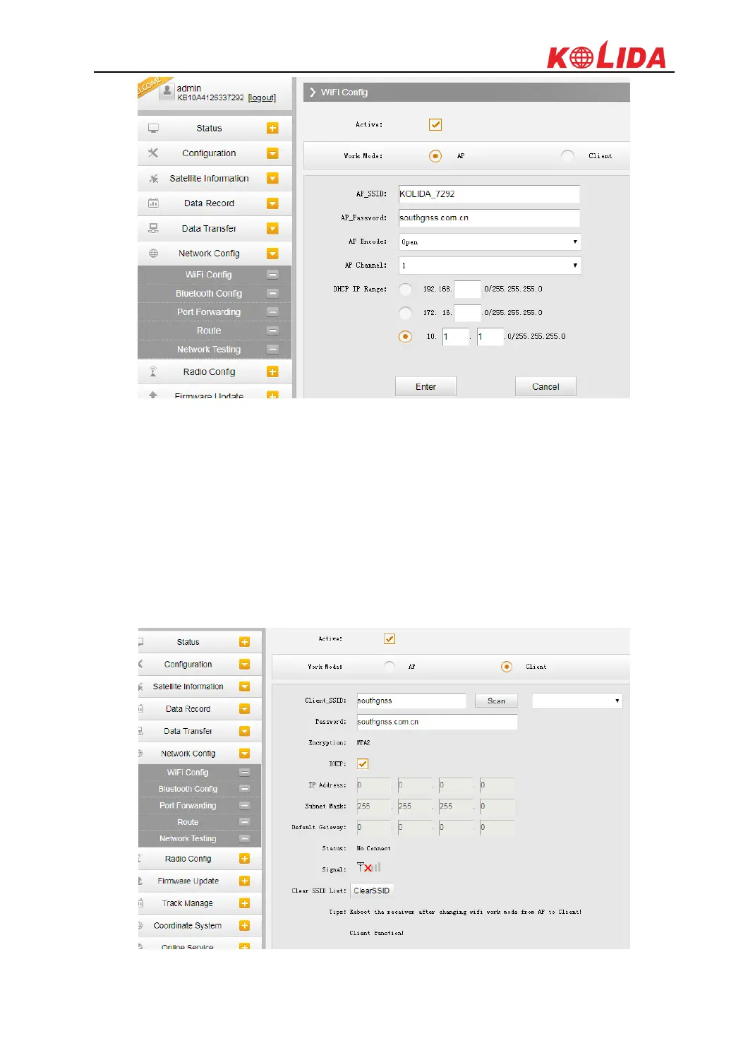 Scan: Click this button to search the surrounding available WIFI hotspot.