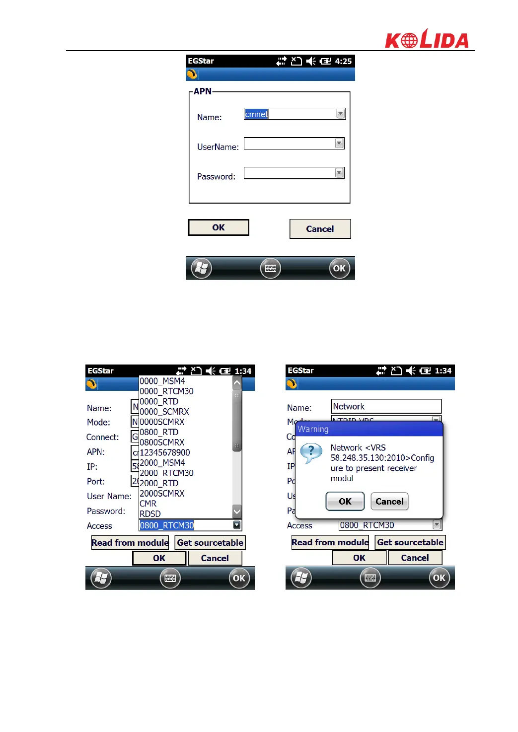 9) After the message “Uplink GPGGA data success” appears in the status bar, click “OK”