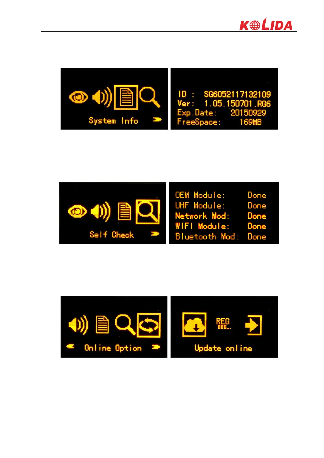This online service option is used for registration and upgrade firmware online for KOLIDA