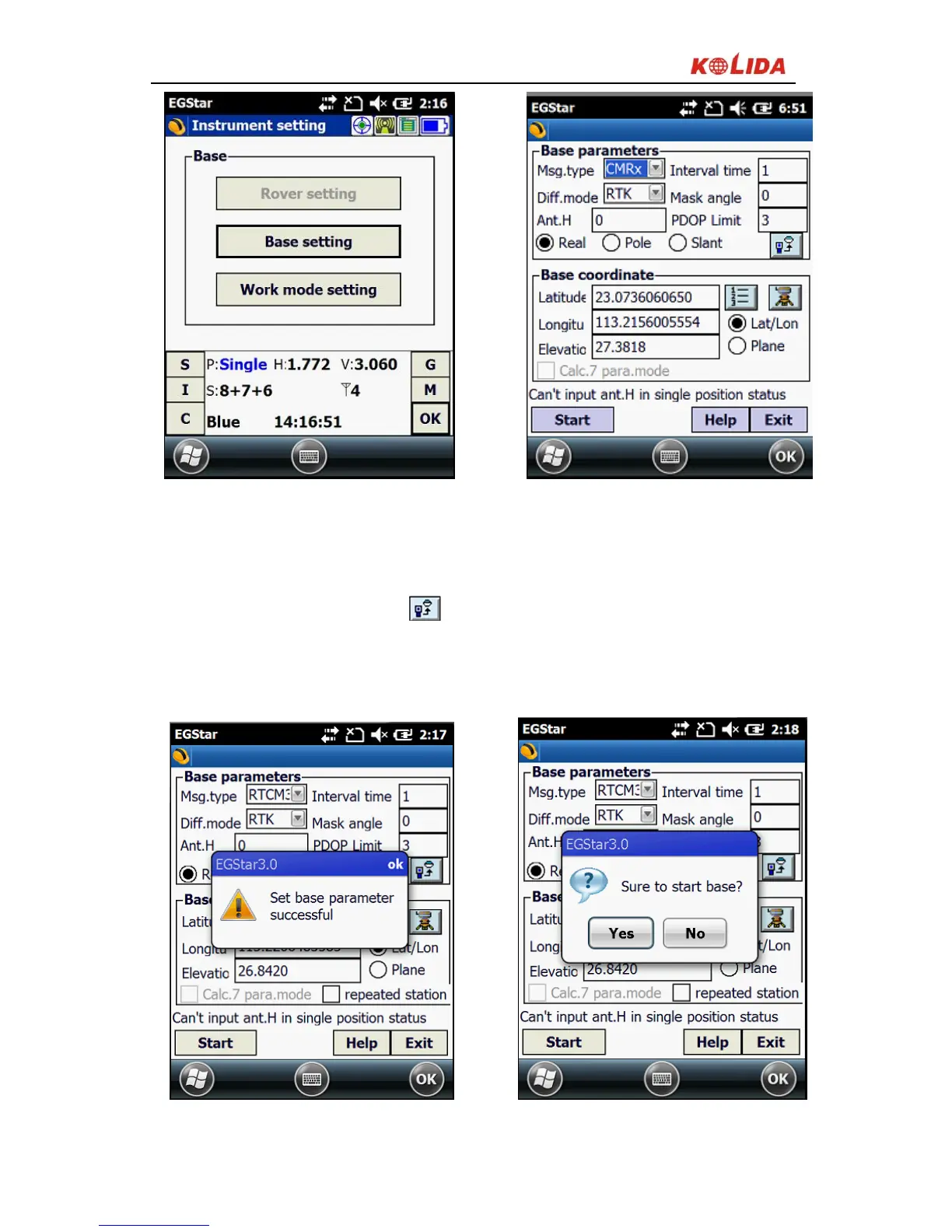 3)Set the base station parameters. Normally you only need to set difference