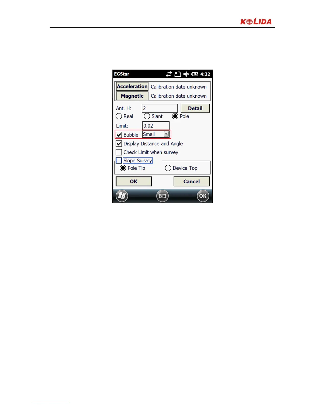 return to Point Survey screen, you can see the electronic bubble on the upper
