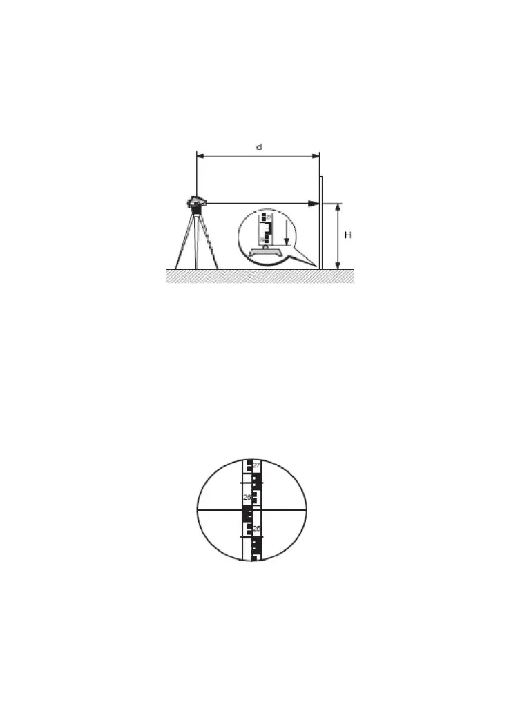 7) Record the center height H of cross-hair on the staff