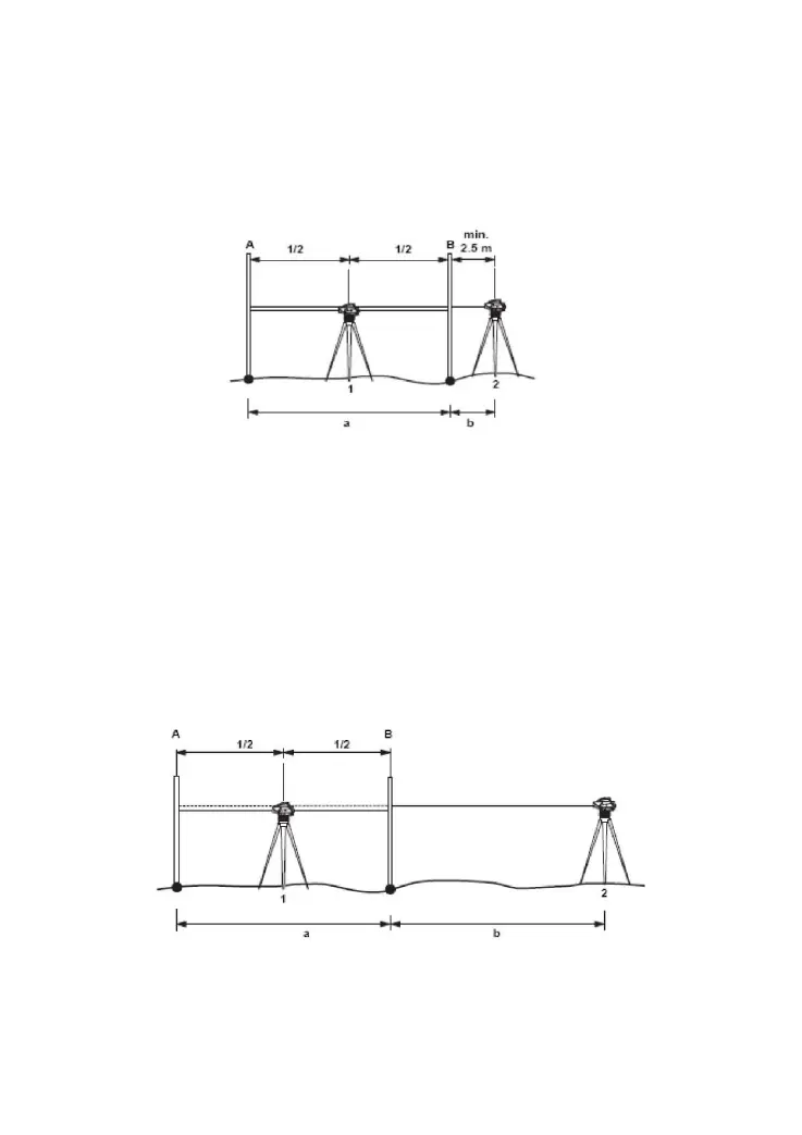 Set the equipment between the 2 staffs in a m away, a is about 20m. Then set the