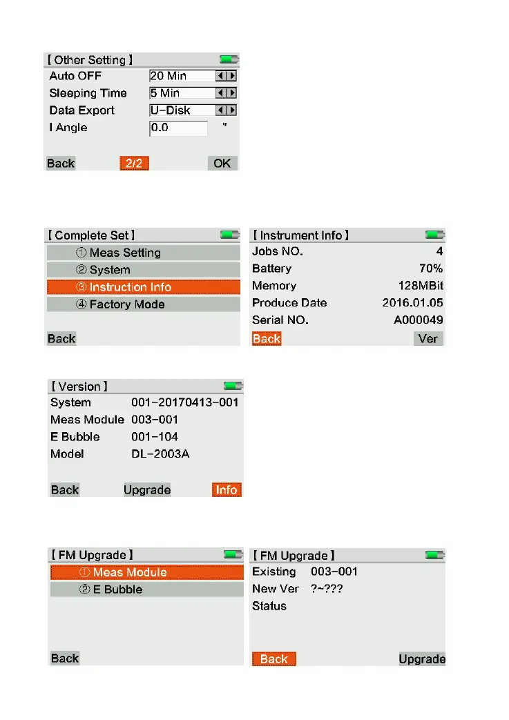 Press [Upgrade] to enter the upgrade page for firmware or E bubble.
