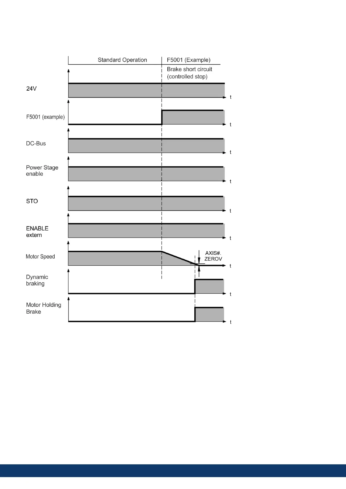 If the drive detects the motor to be at zero velocity (AXIS#.ZEROV) or timeout occurs (AXIS#.ZEROT), the motor