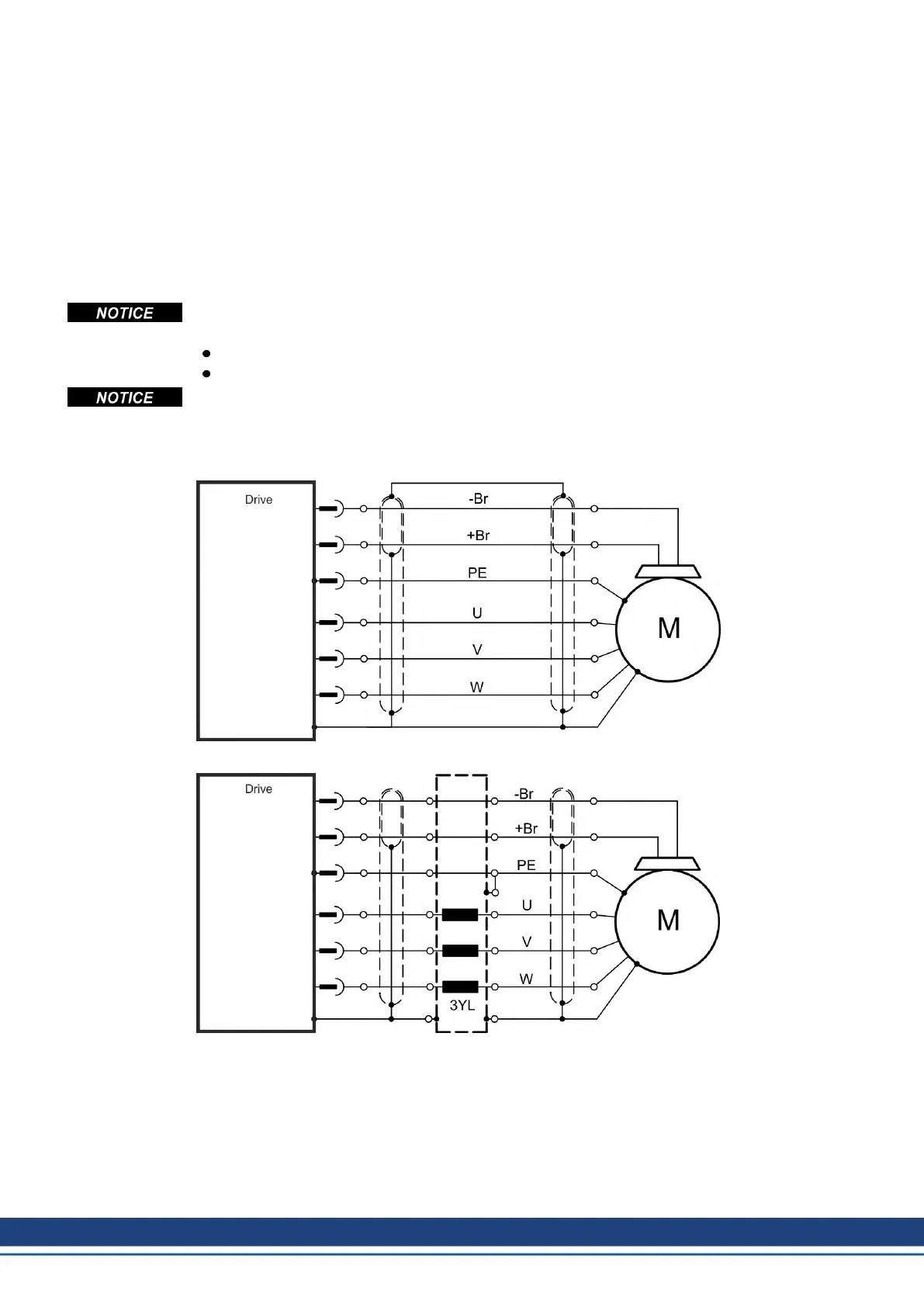 lengths from 25 m to 50 m, a motor choke (3YL) must be wired into the motor cable (near the