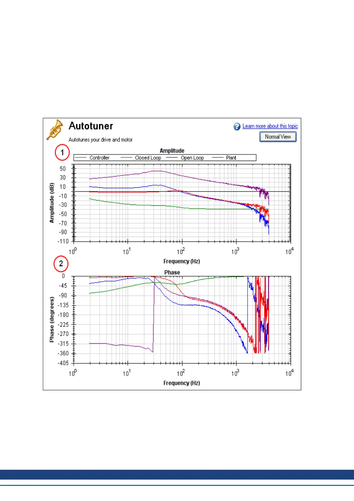 Below is a Bode plot of a motor with no load. The top plot is the magnitude plot (1); this plot shows the gain of the