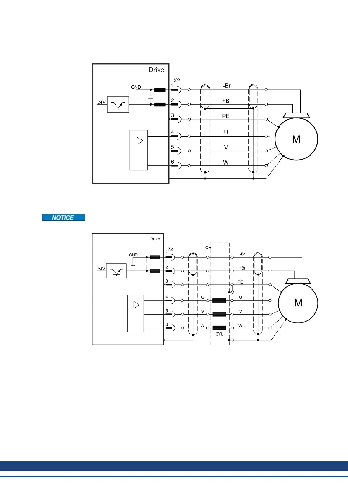 lengths from 25 m to 50 m, a motor choke must be wired into the motor cable (near the drive).