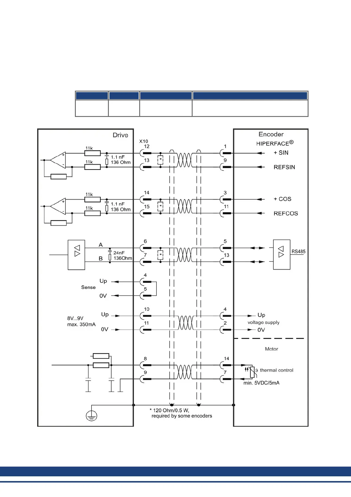 The thermal control in the motor is connected via the encoder cable and evaluated in the