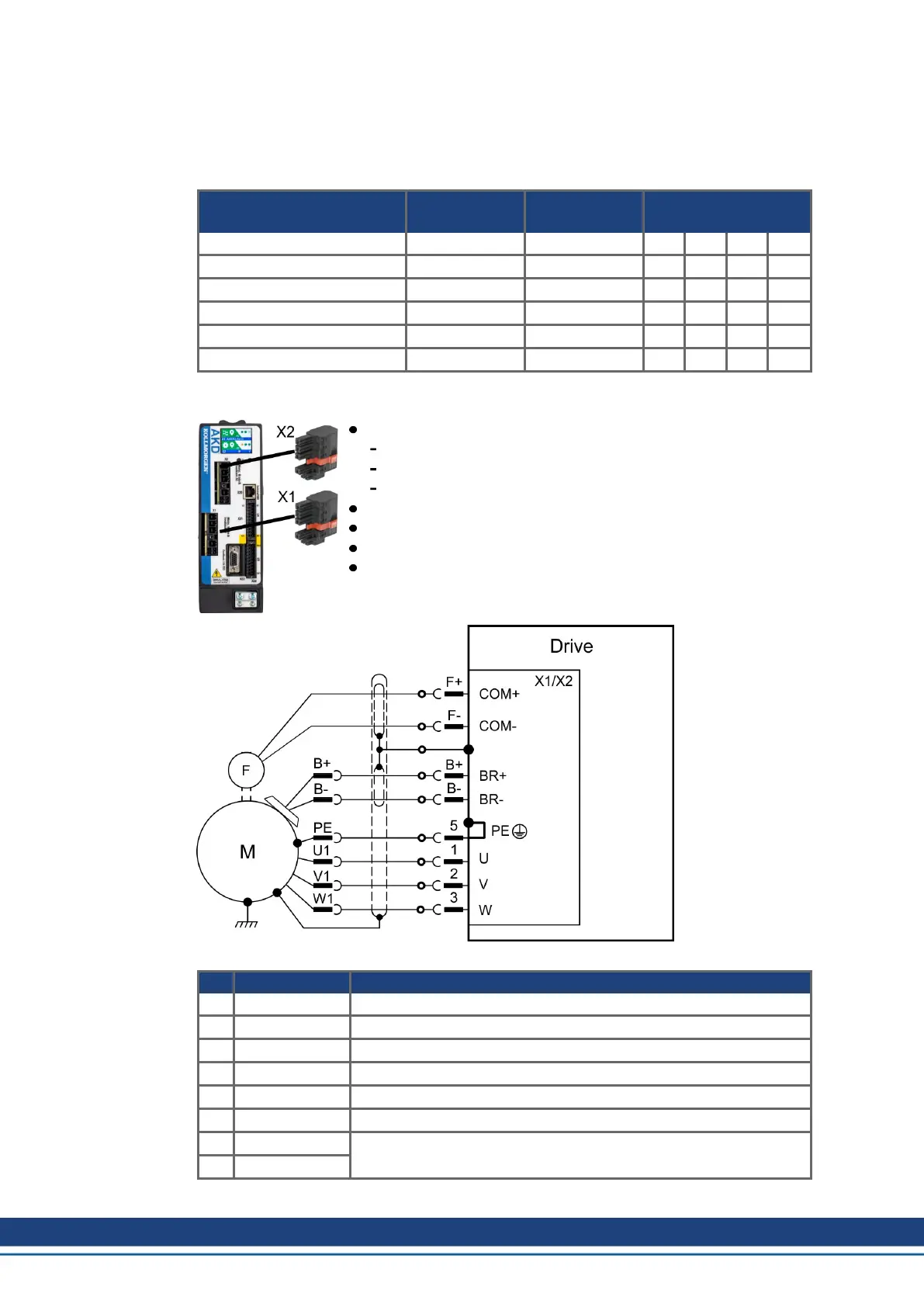8.9.2.1 Motor Power, Brake and Feedback connectors X1, X2
