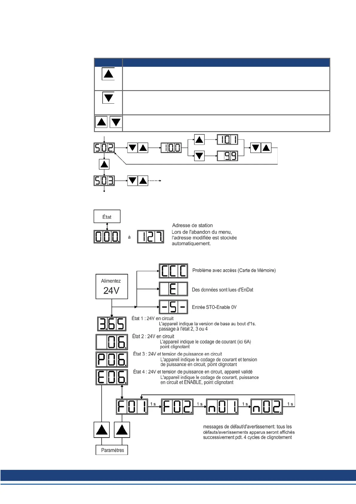 appuyer une fois: un point de menu vers le bas, décrémentation d'1 du chiffre