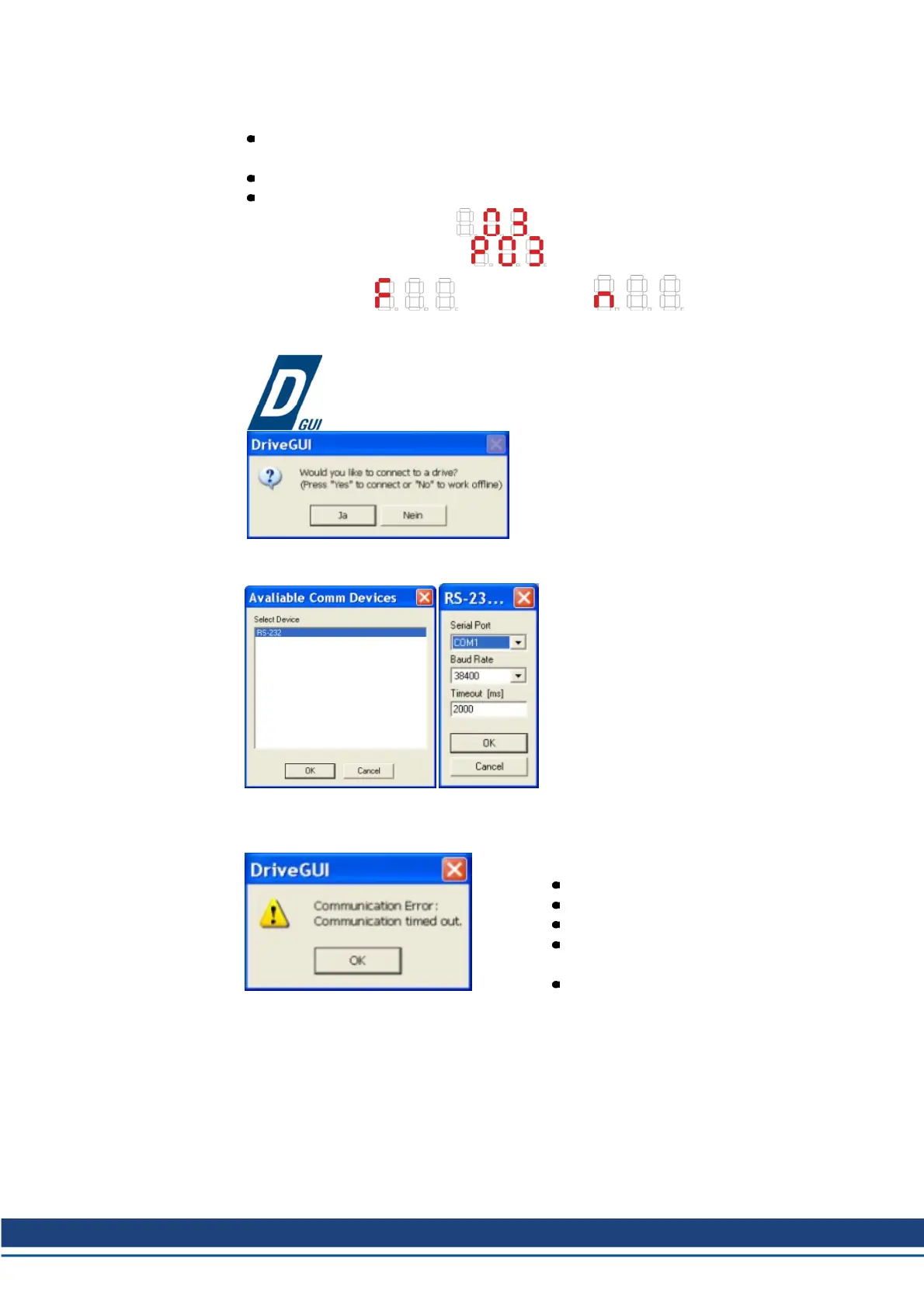 Le logiciel essaye alors d’établir une connexion vers le variateur. Si aucune connexion n’est