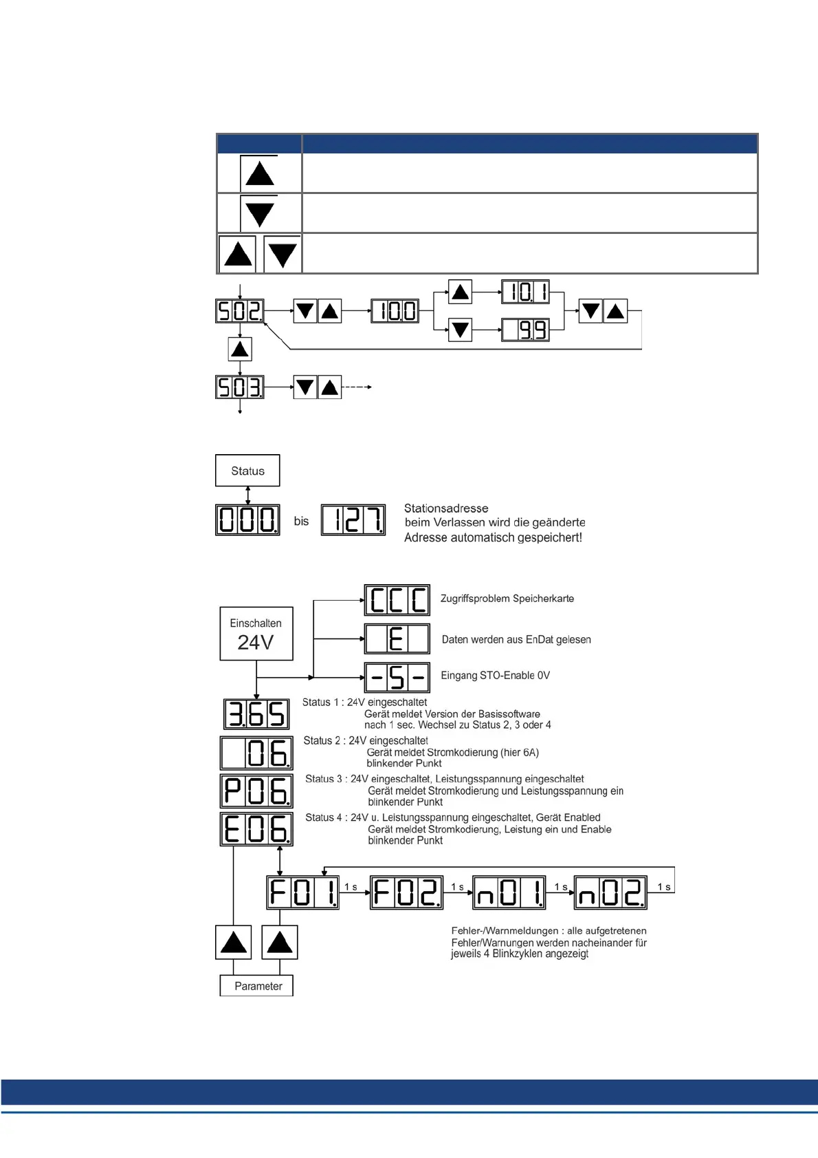 einmal drücken : ein Menüpunkt nach unten, Zahl um eins verkleinern