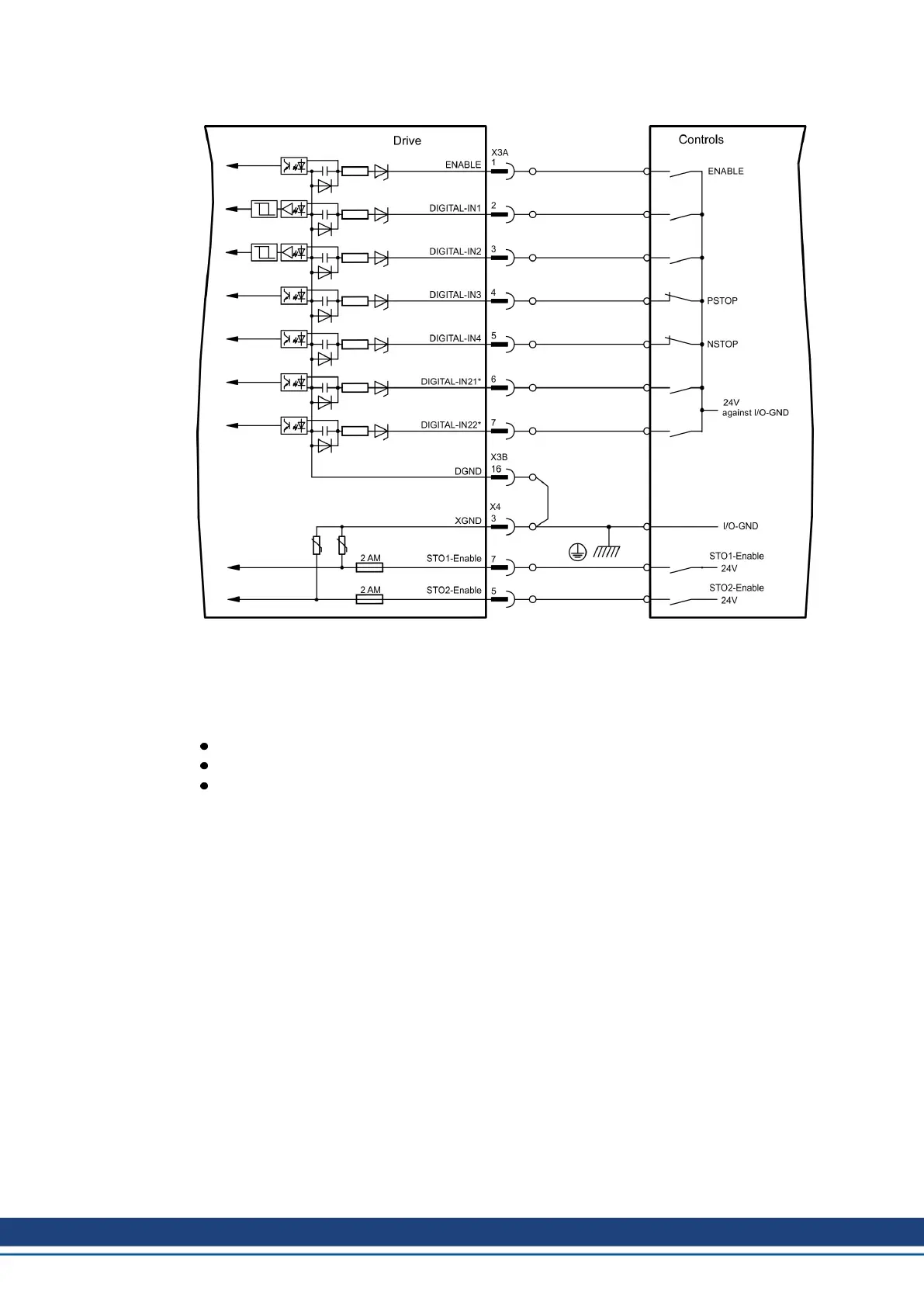 X3A/1, active high). Enable is possible only if inputs STOx-Enable have a 24 V signal (➜ #