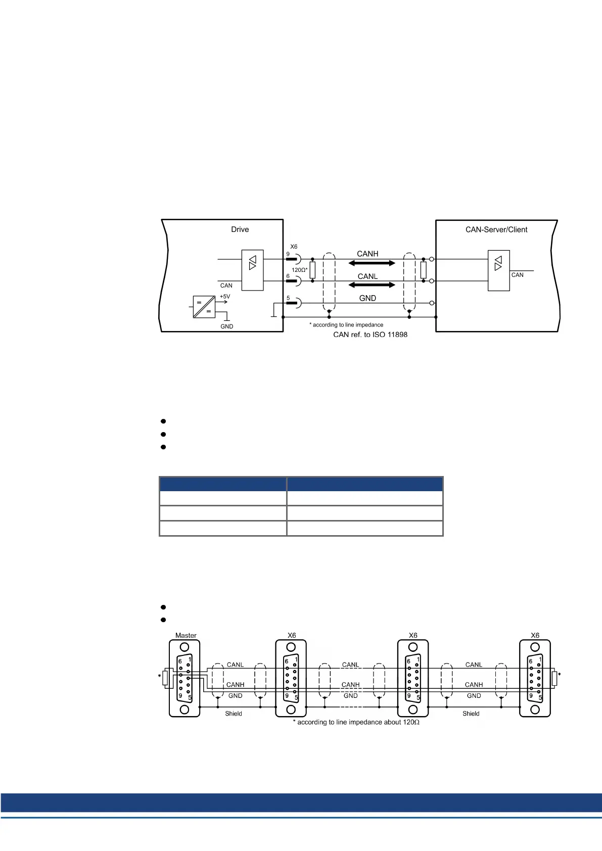 To meet ISO 11898, a bus cable with a characteristic impedance of 120 Ω should be used.