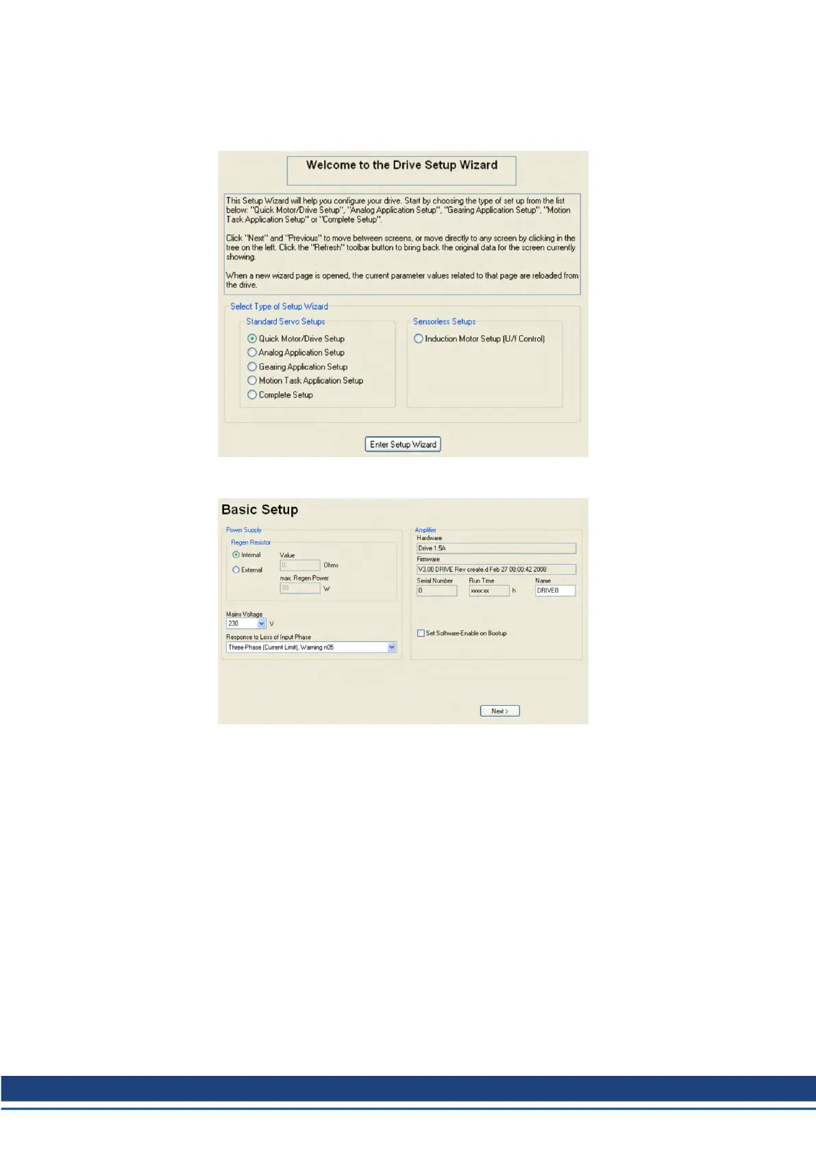The Setup Wizard leads you through the necessary steps for configuring your servo amp-