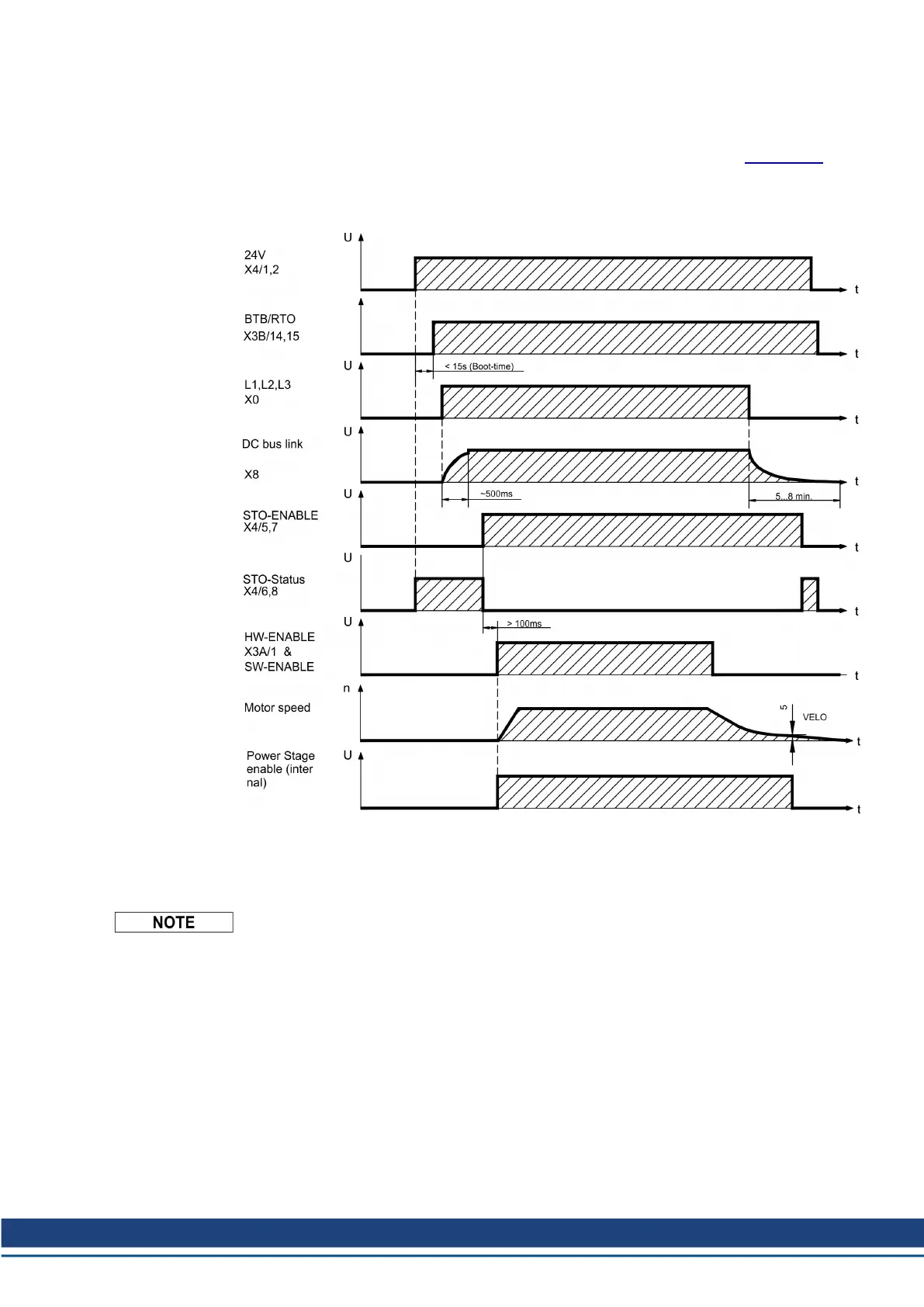 In case of a built-in safety card, wait for the Ready Acknowledge (X30 Pin 16) of the safety