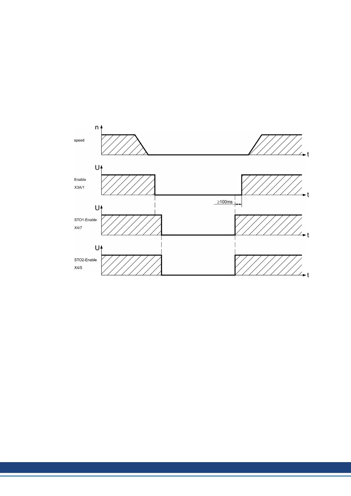 inputs STO1-ENABLE and STO2-Enable have to be separated from +24 VDC time-delayed.