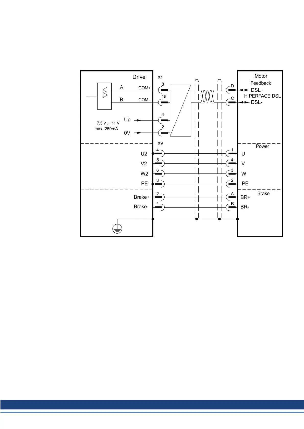 9.12.2 HIPERFACE DSL (X1), single cable connection