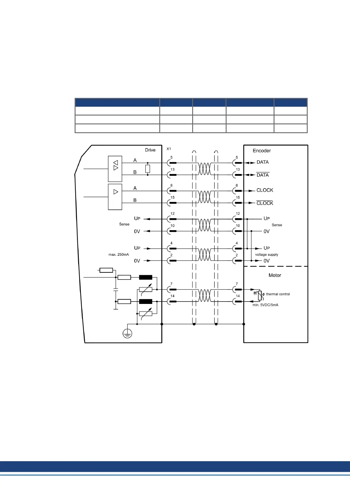 The thermal control in the motor is connected via the encoder cable to X1 and evaluated