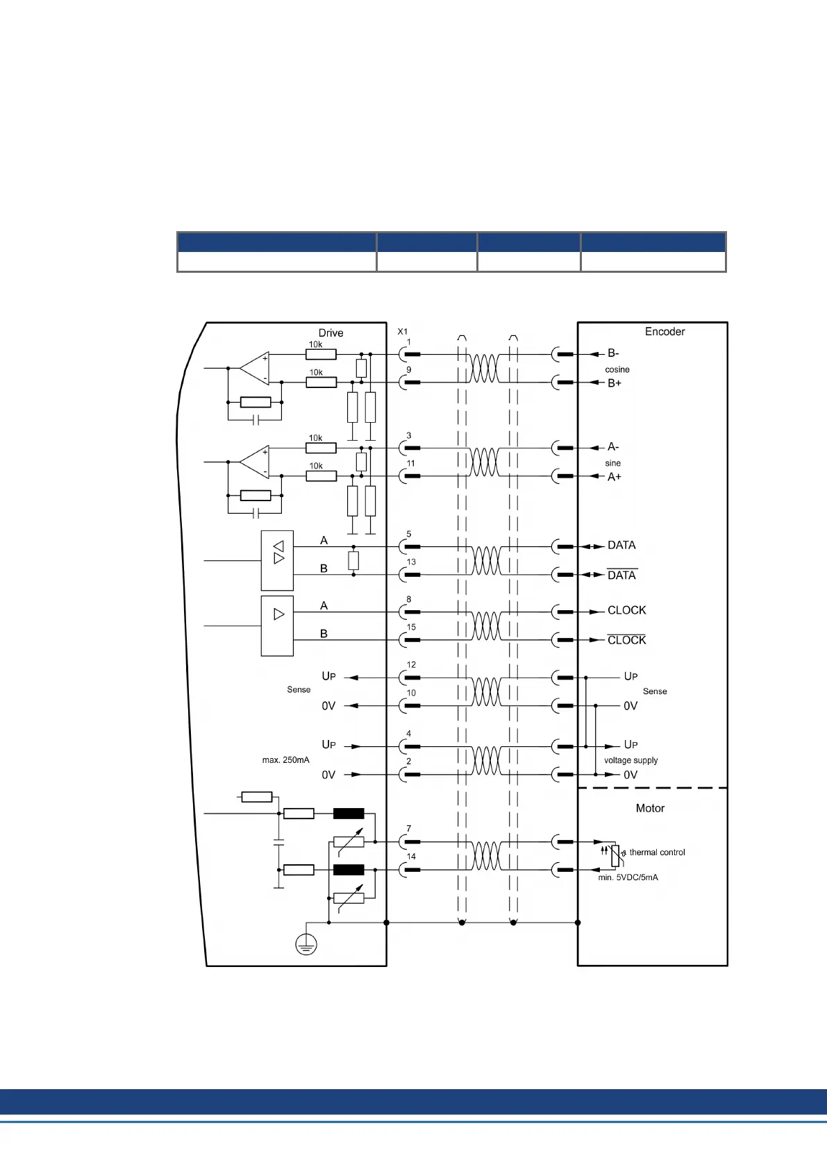 The thermal control in the motor is connected via the encoder cable to X1 and evaluated
