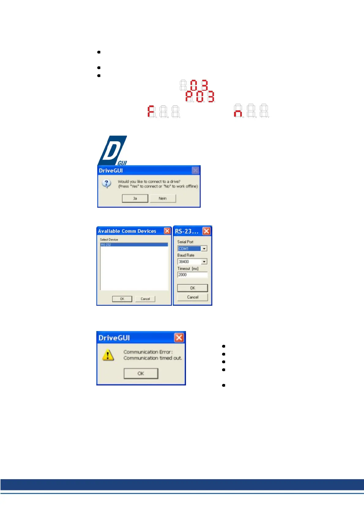 Le logiciel essaye alors d’établir une connexion vers le variateur. Si aucune connexion n’est