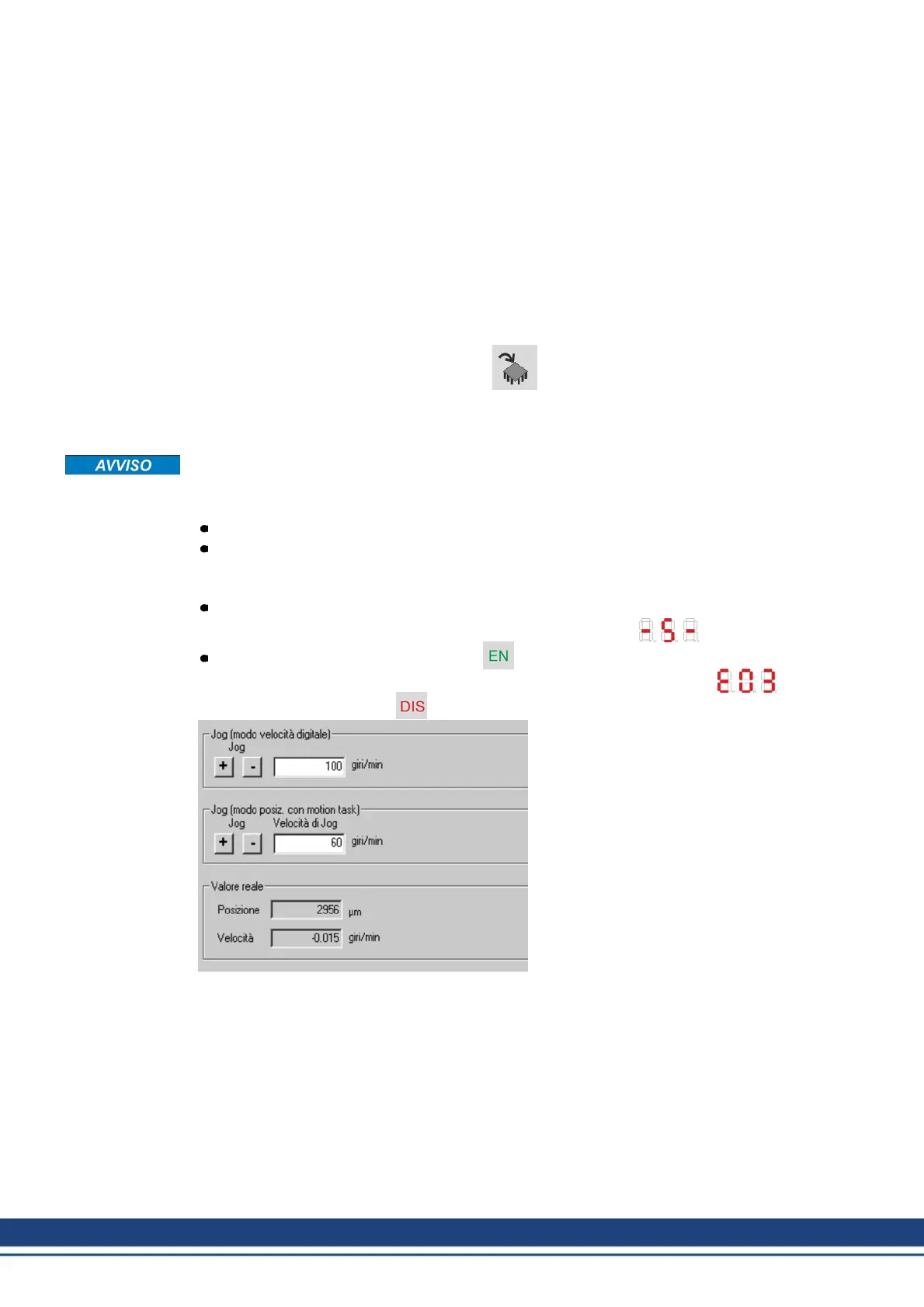 Non compare alcuna avvertenza. Salvare i parametri nella EEPROM del servoamplificatore