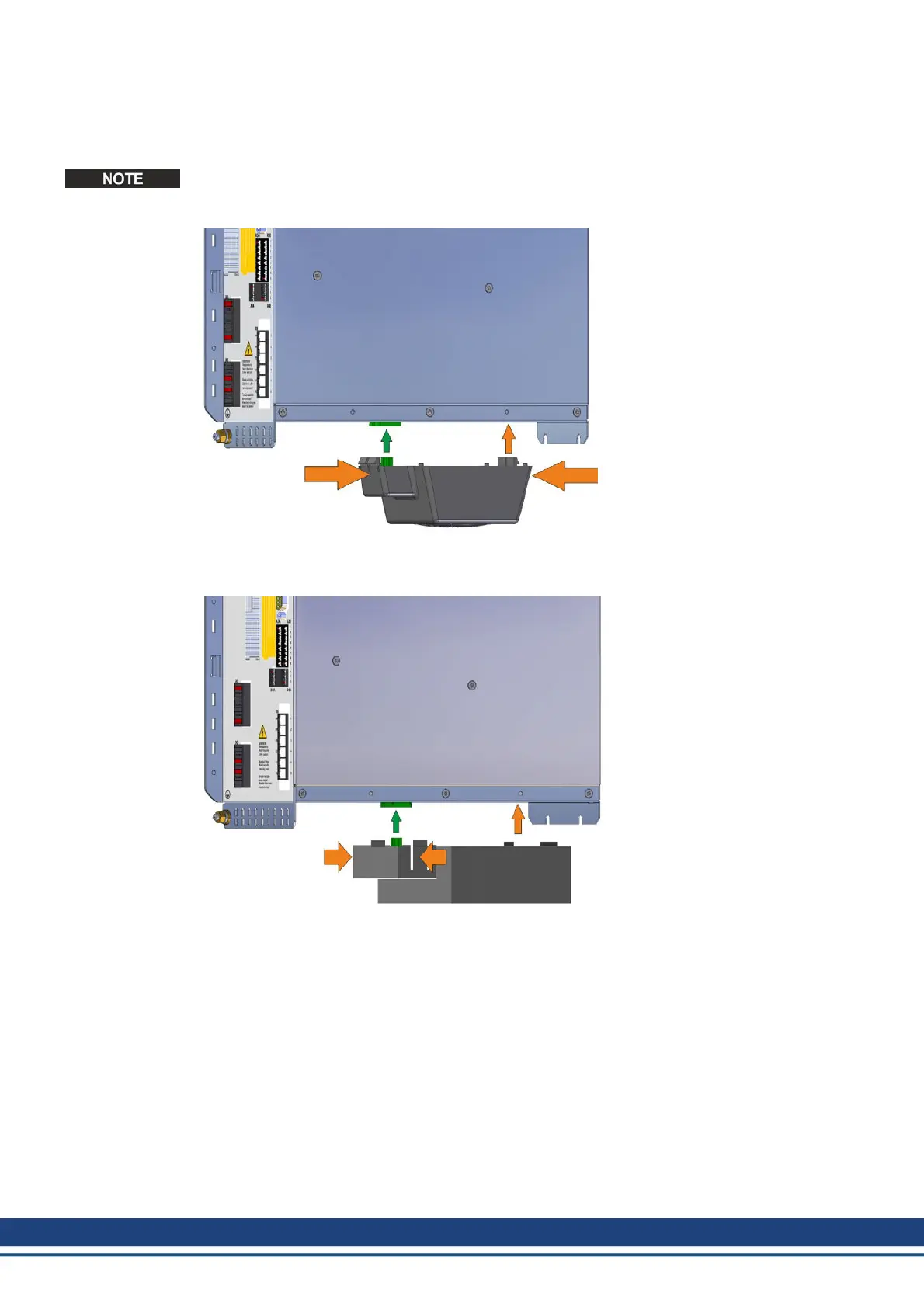 Remove the fan before mounting the servo amplifier and replace it again afterwards.