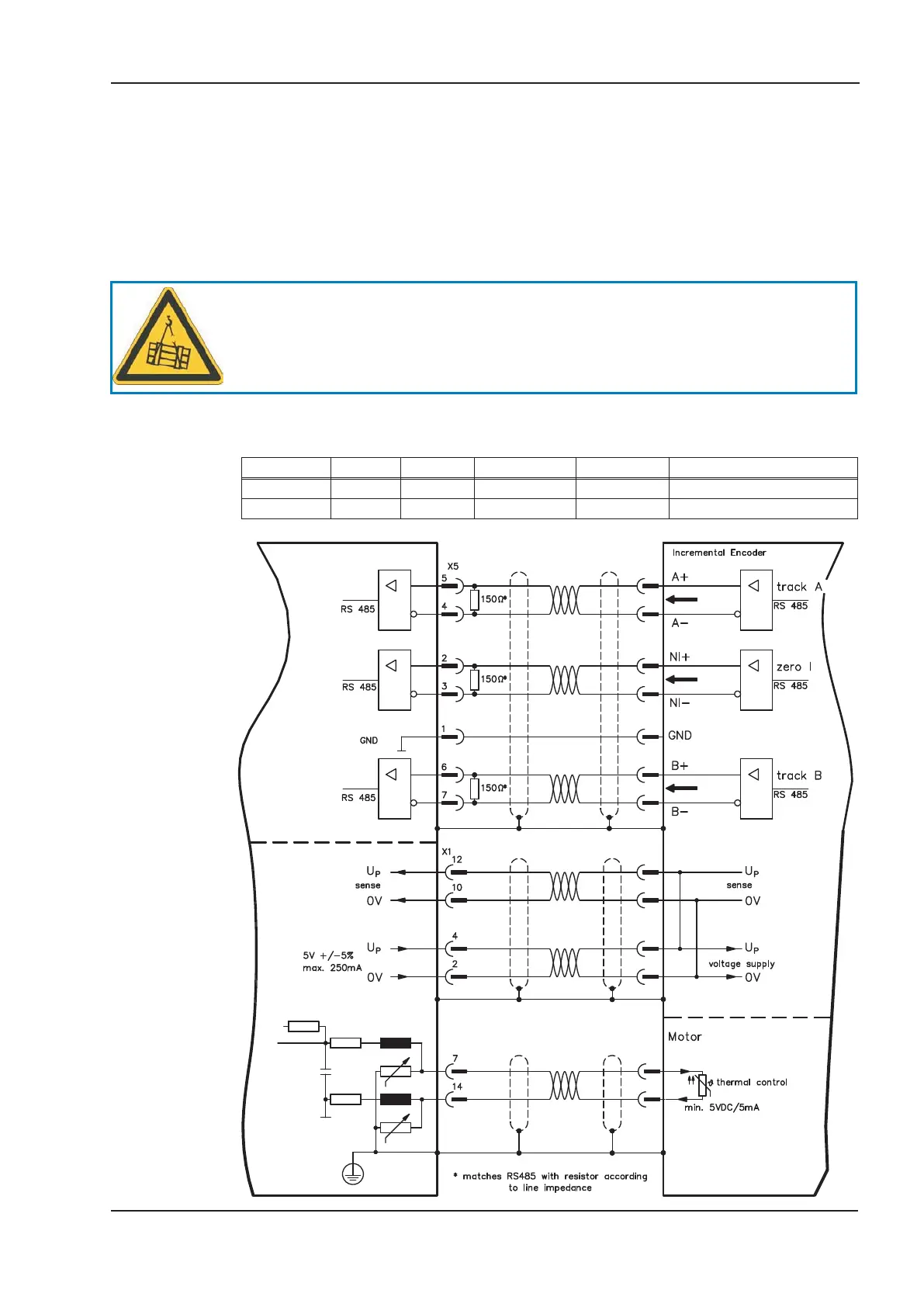 The power supply for the encoder and thermal control in the motor is connected to X1.