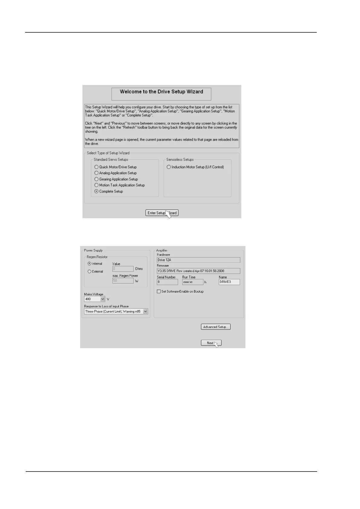 The Setup Wizard leads you through the necessary steps for configuring your servo