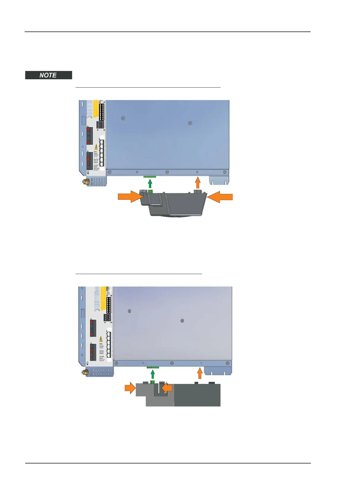 Remove the fan before mounting the servo amplifier and replace it again afterwards.