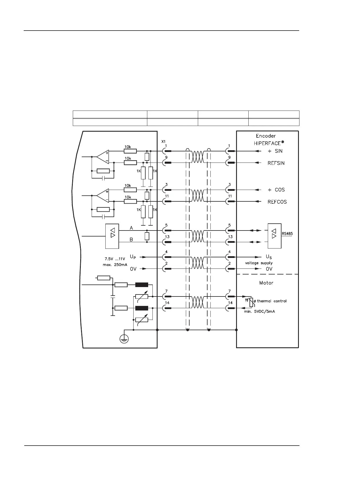 The thermal control in the motor is connected via the encoder cable to X1 and evaluated