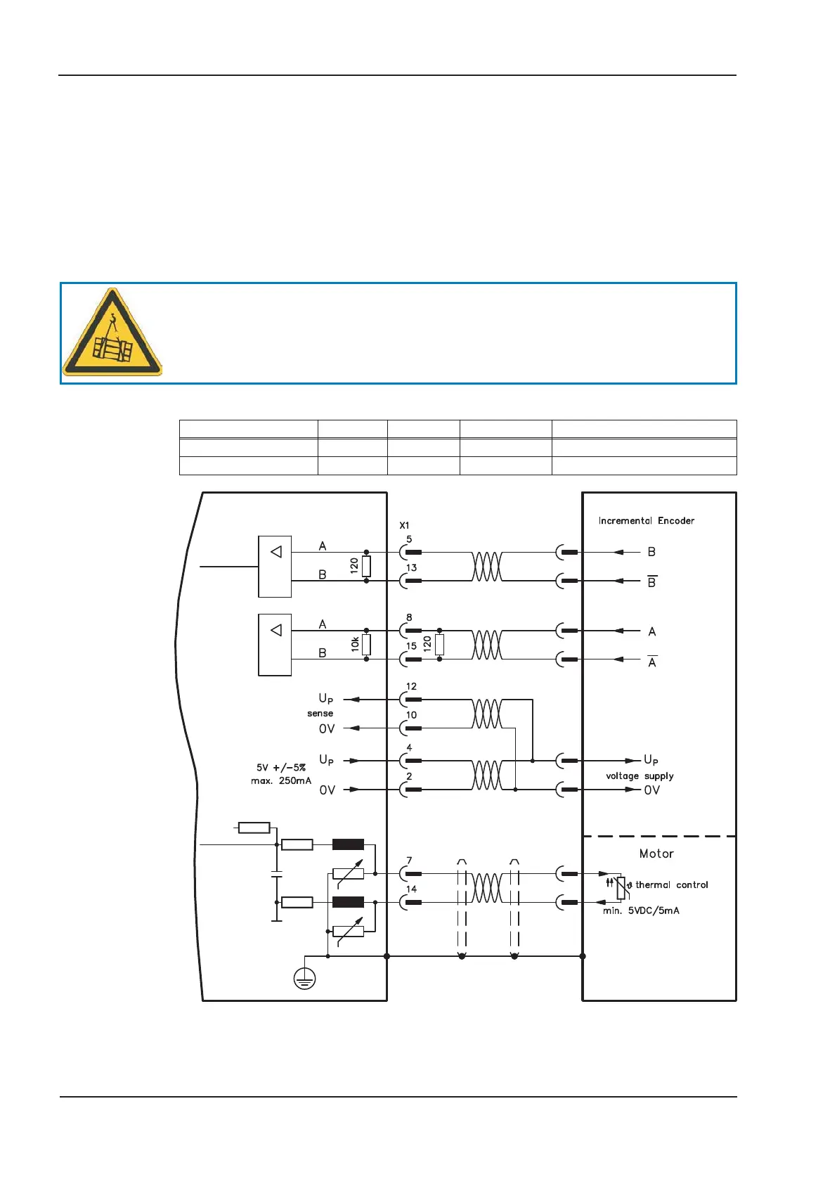 The thermal control in the motor is connected via the encoder cable to X1 and evaluated