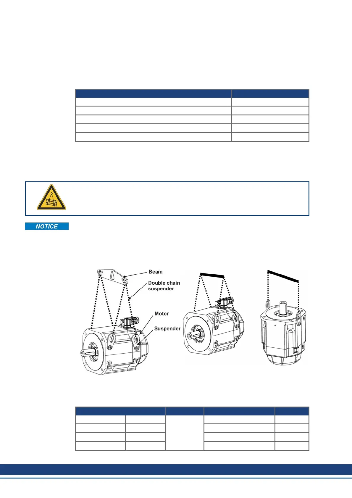 chain suspenders. The motor may be borne on two or four runs of the chain suspender.